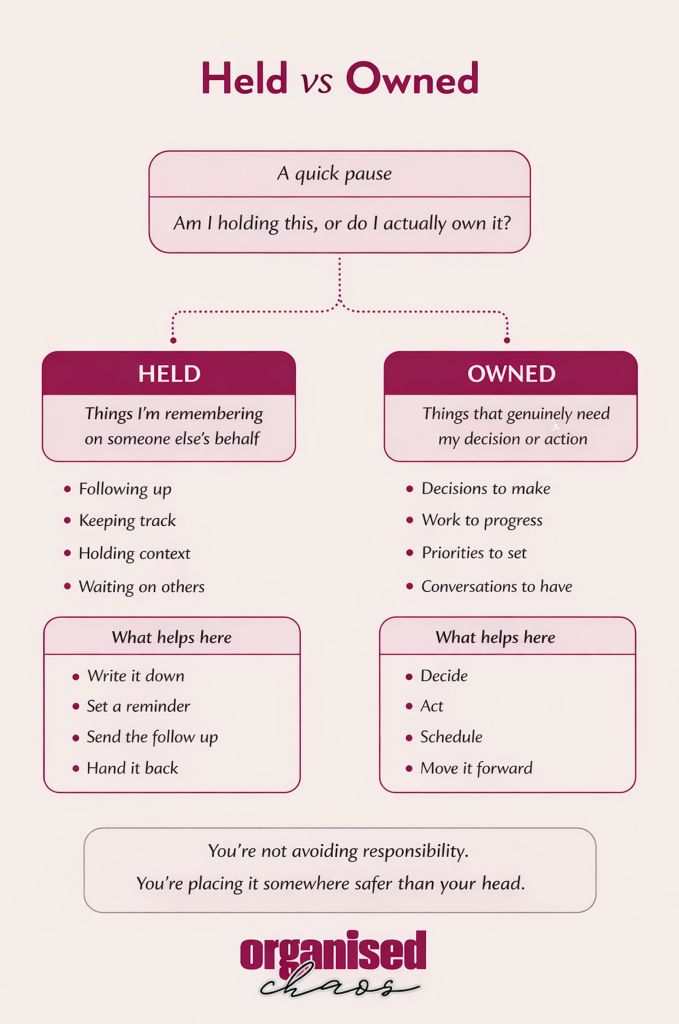 Once you notice something you’re holding rather than owning, the assistant move is to externalise it.